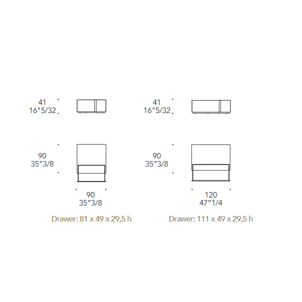 Coffee table with drawer externally covered in MarmoReflex/ LegnoReflex glass with inlays in Bronze (100M) finish and in bronze mirror.