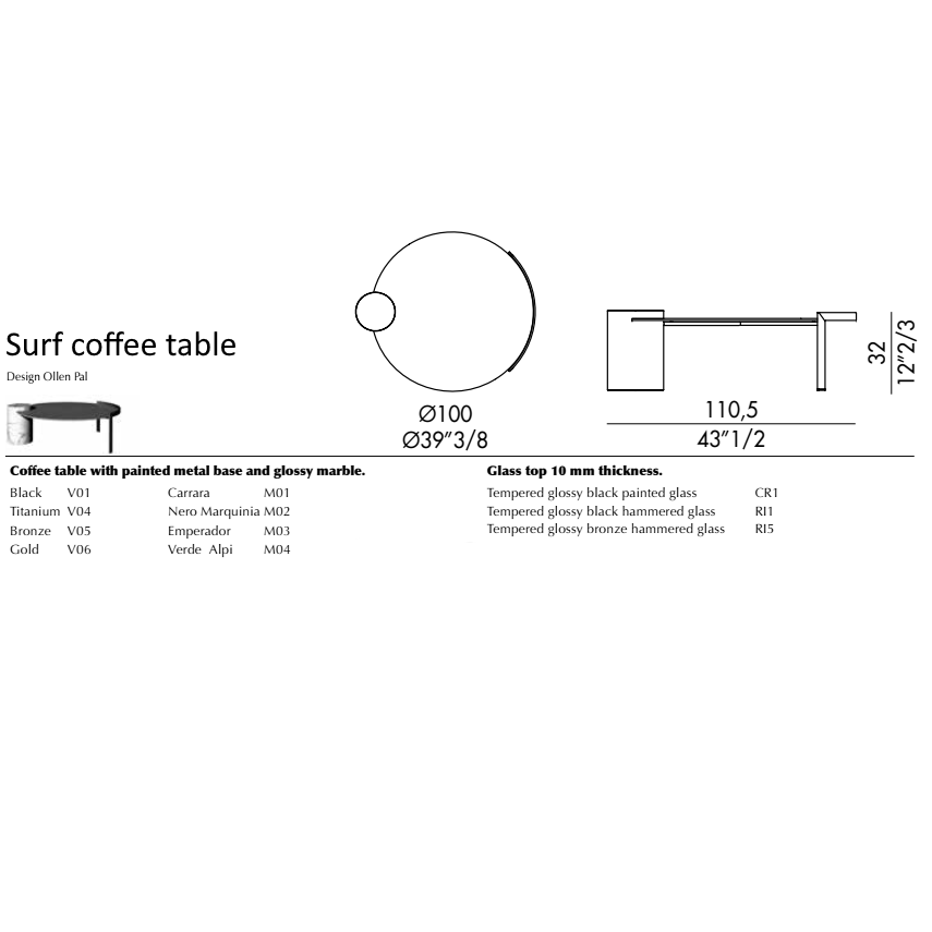 - Variant: 39.4" Diameter x 12.7" H / White Carrara Marble Base/Top black glass/ Frame metal titanium finish / Special Order