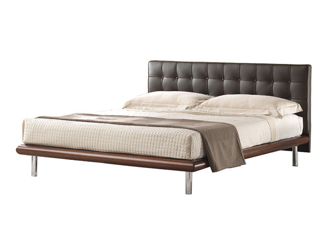 Destined to become a classic, this bed with its architectural spare lines and sumptuous comfort can blend with either pure modern or more traditional interiors. Meticulously crafted in Italy. Available to fit three American mattress sizes: Queen, California King, and Eastern King. Designed by and available exclusively from italydesign.com. The two cylindrical bolster pillows are not included and available separately. Available in over 100 leather colors