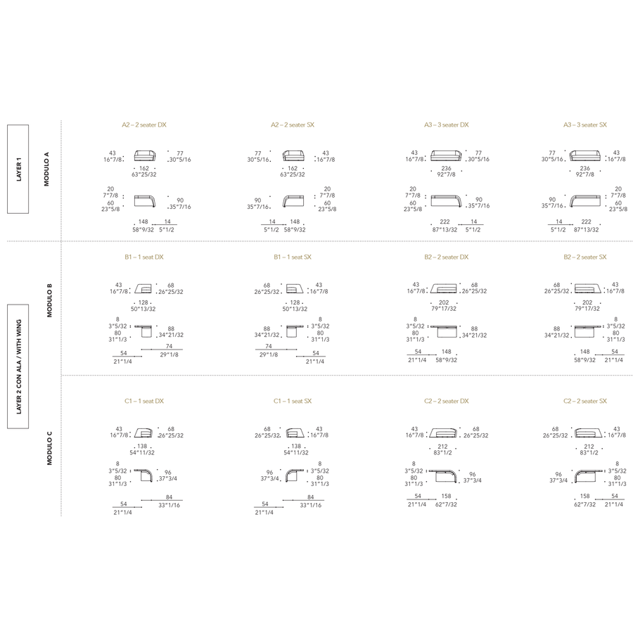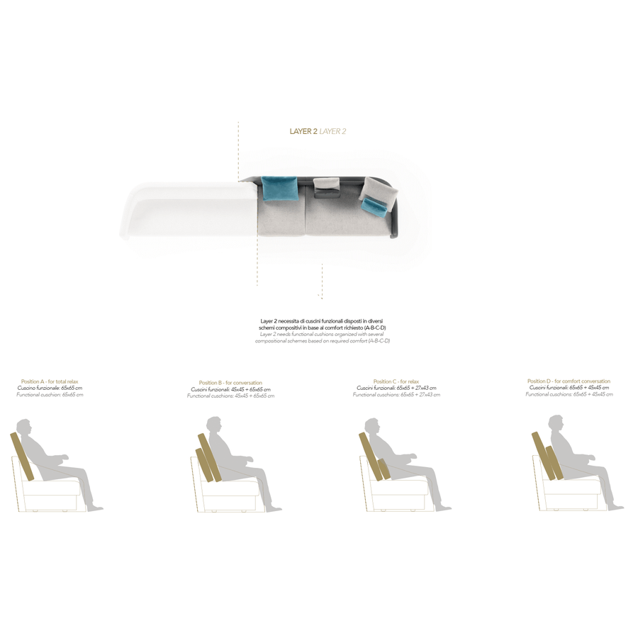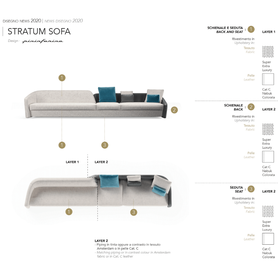 The deeper Layer 2 can be customized with a double type of upholstery and with contrast-colour piping.