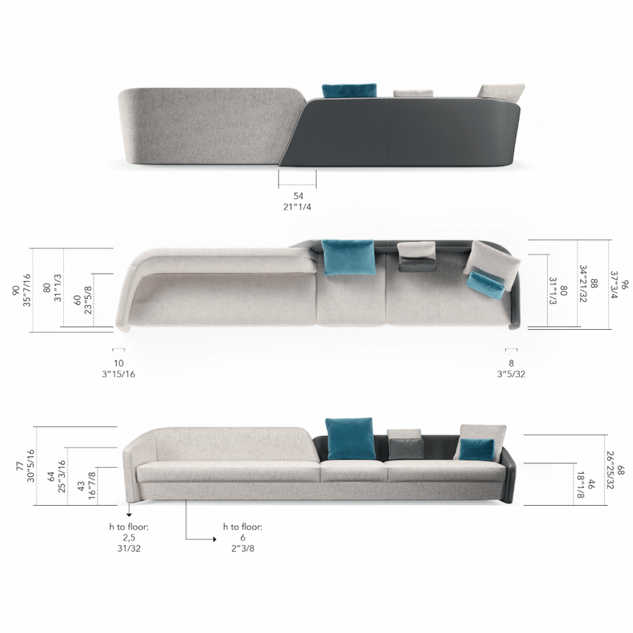 Stratum represents a new concept of sofa. The characterizing aspect is the composition of different levels that offer two different seat depths thus ensuring comfort and relaxation at the same time. The use of different materials enhances the stratigraphy and, at the same time, gives the sofa a unique and distinctive character.