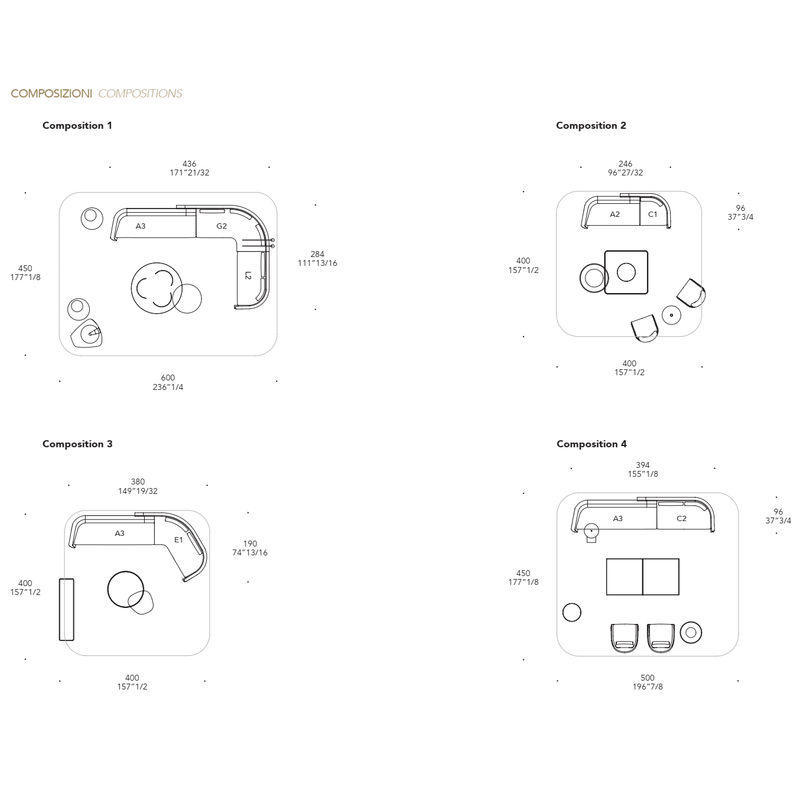 Internal wooden structure with polyurethane foam padding and non-deformable polyurethane seat cushions. Upholstery available in fabric and leather.