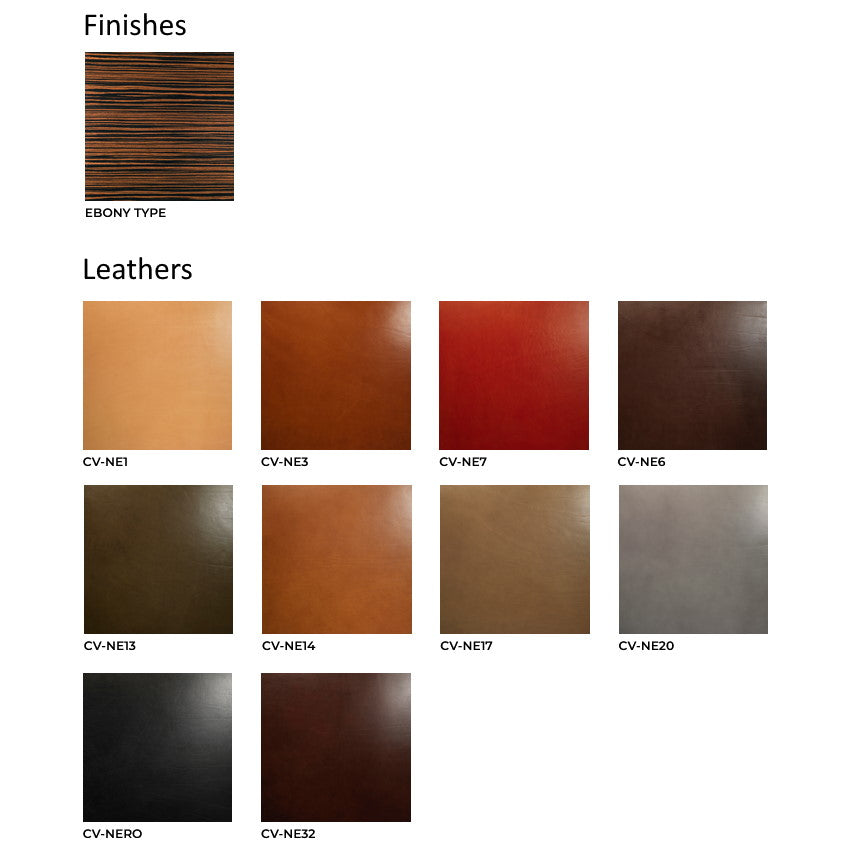 melamine coated panels covered in saddle leather or soft leather. A steel element covered in saddle leather or soft leather is