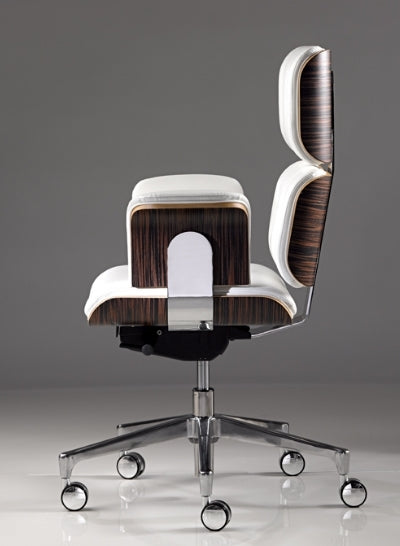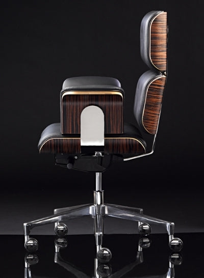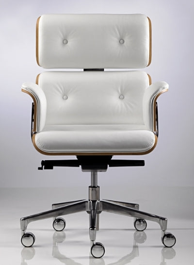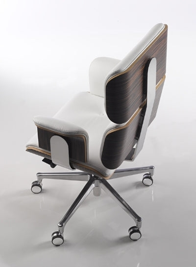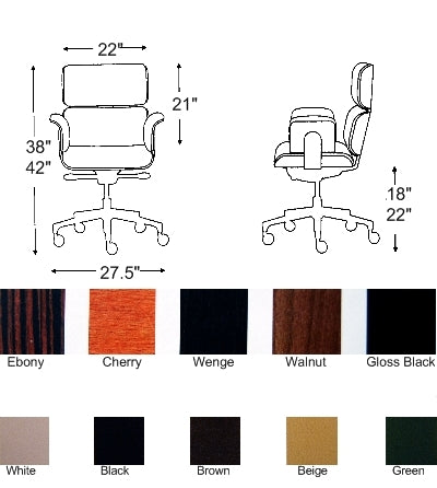 Choose a seat frame color from Ebony, Walnut, Wenge, Cherry or Gloss Black all with a chromed steel base. Choose a leather color from White, Black, Brown, Beige or Green.