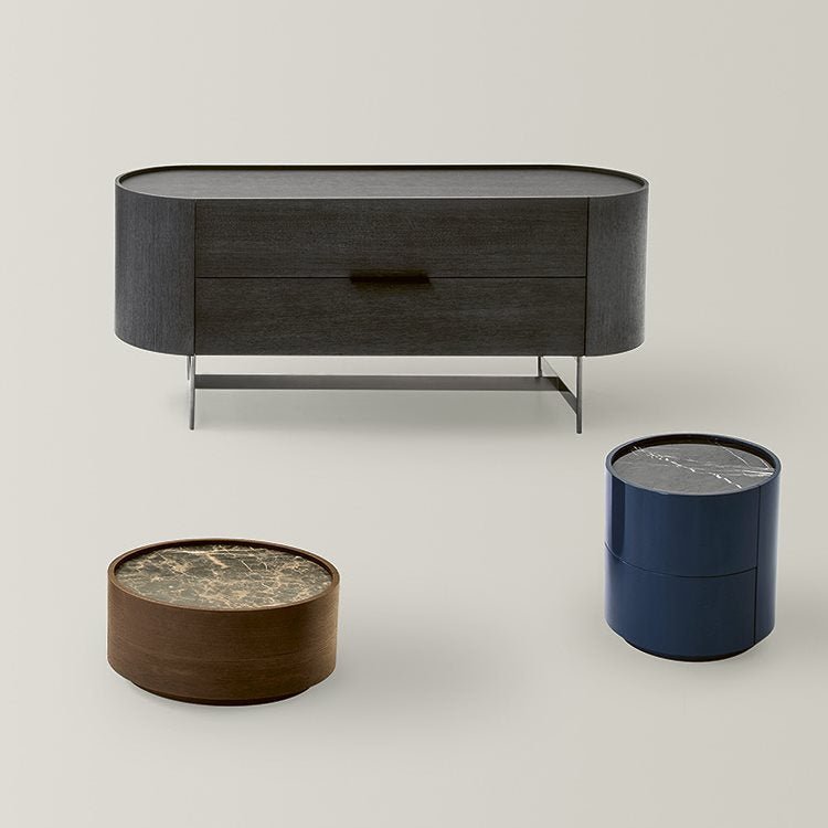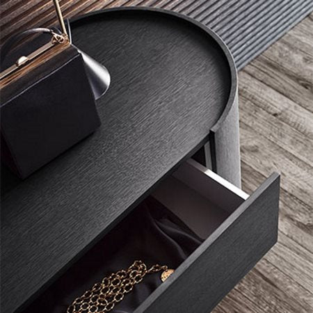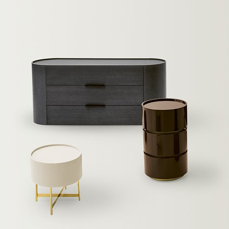 Captivating, sensual and chameleonic: the Dedalo collection lends itself to such an array of possible uses, with plenty of scope for personalizing your look and interpreting the space. Each unit features the geometric essentiality of the cylinder in its design, with a practical recessed top designed to act as a handy tray for setting down items.