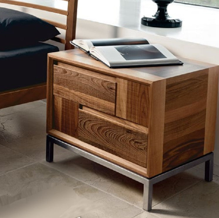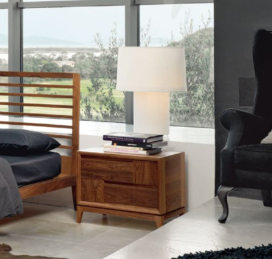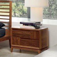 A delight for the eye with its alternating wood grain patterns and play of light and shadow, the Toscano nightstand exhibits the careful attention that goes into every detail. The nightstand is crafted of solid walnut with a visible natural grain and hand oiled finish. The interiors of the two drawers are also finished in solid wood and are constructed using mortise and tenon joinery. The top and sides of the nightstand are beautifully detailed with a contrasting wood trim. The subtly detailed base, also in solid walnut, lends a light and airy elegance to the piece. Its timeless style easily adapts to both the most modern environments or more traditional settings.