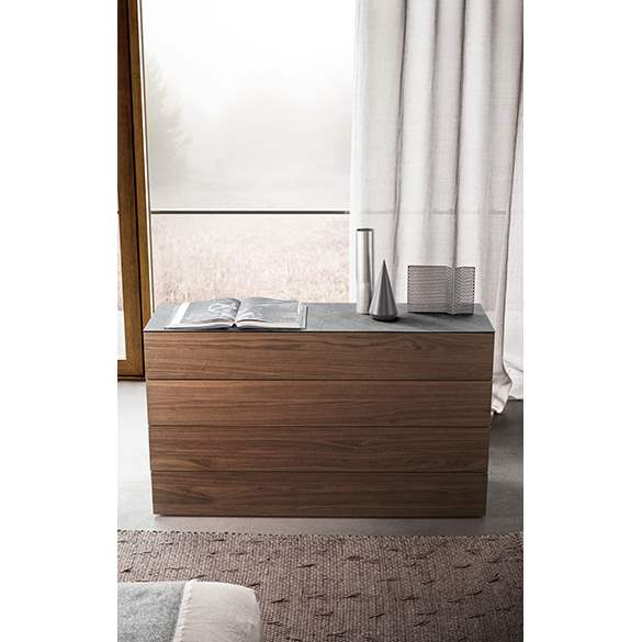 Thanks to its refined, minimalist design Spazio embellishes any bedroom with its versatile, very customizable chests-of-drawers and bedside units.