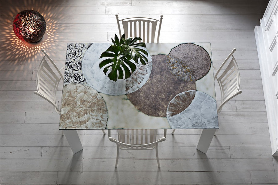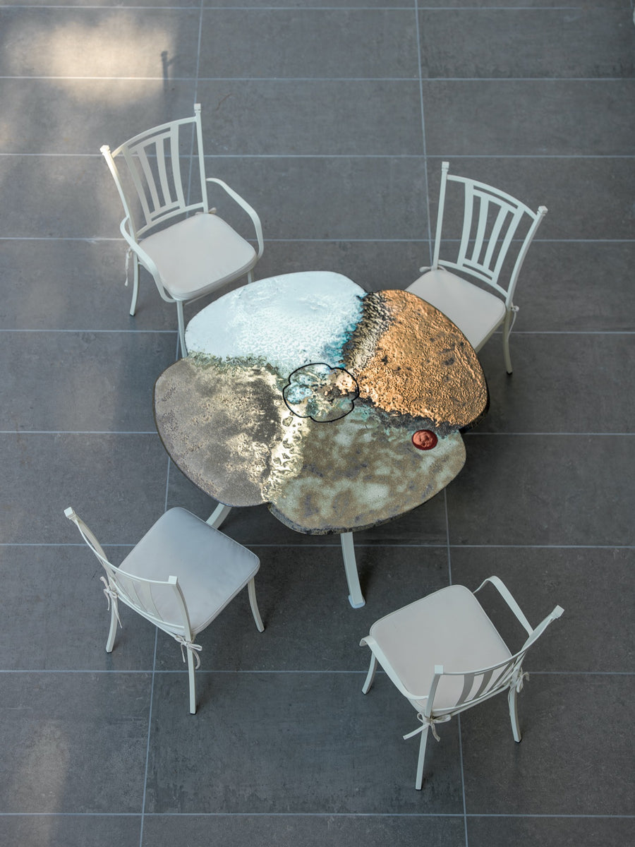 The Ceramic Stone Modern Art Dining Table Collection features lava rock from southern Italy with a unique glazing process with 2 firings at 1830° Fahrenheit.
