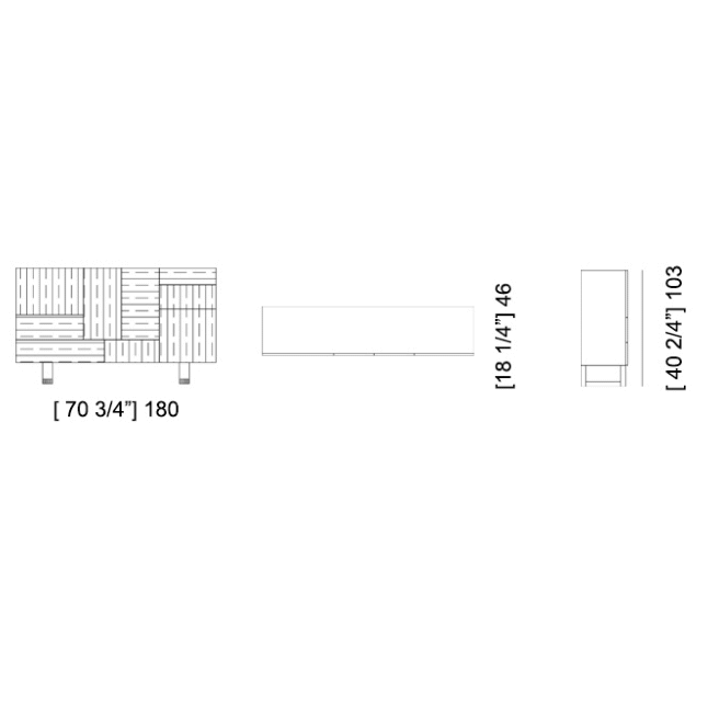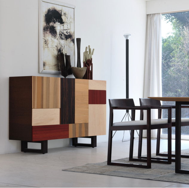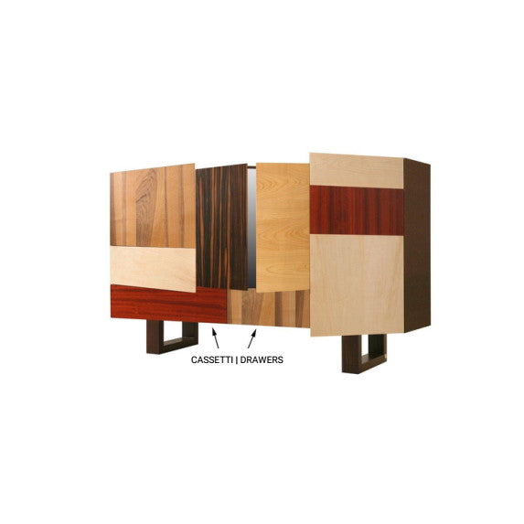 Sideboard made of ash wood with 4 doors and 2 drawers veneered in essences of