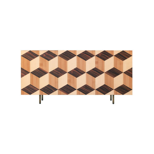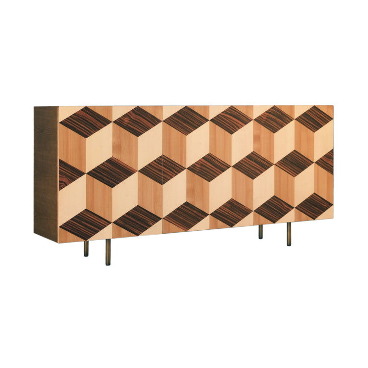 Sideboard made of ash wood with 3 doors veneered in essences of Ebony, Maple and