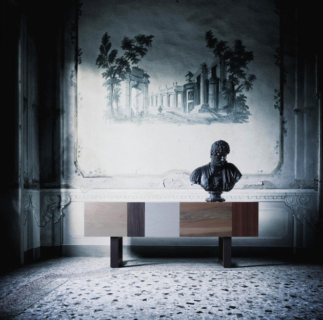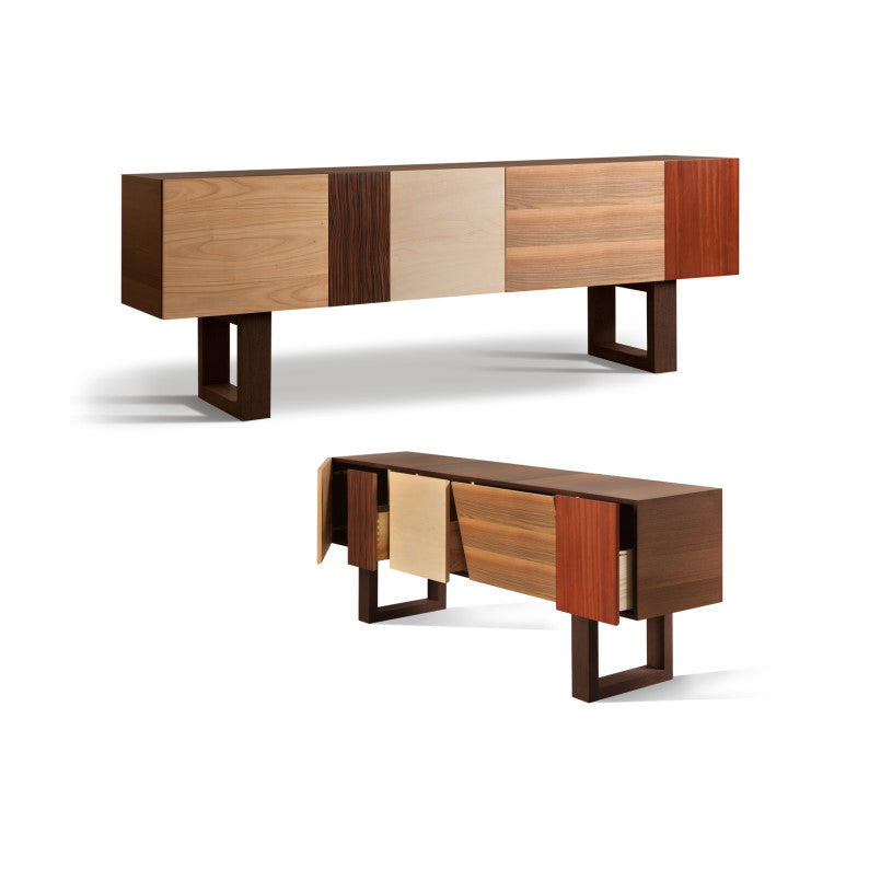 Sideboard made of ash wood with 2 doors and 3 drawers veneered in essences of