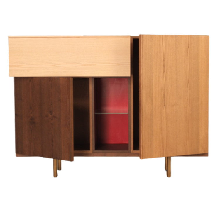 Sideboard made of ash wood with 2 doors, 1 drawer and 1 open element.