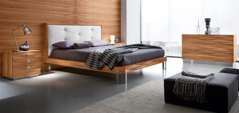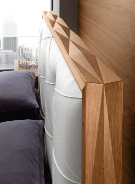 The Veneto bed is meticulously hand crafted in Italy using natural walnut, leather and stainless steel to create a perfect balance between the warmth of natural wood and architectural styling.
