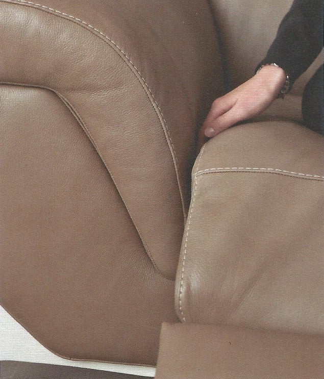 The Capri Sofa combines the best of all features - stylish looks, comfort,quality materials, and multiple recline mechanisms. The adjustable headrests and extending footrests are operated by independent motors by touching discretely hidden buttons on the sides of the seat cushions. The adjustable headrest on the non-reclining seating is manually operated. An optional battery is available to power the motors in case there is no electrical outlet nearby.