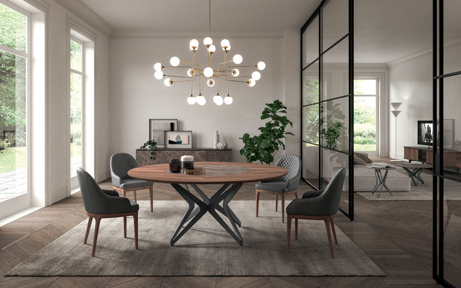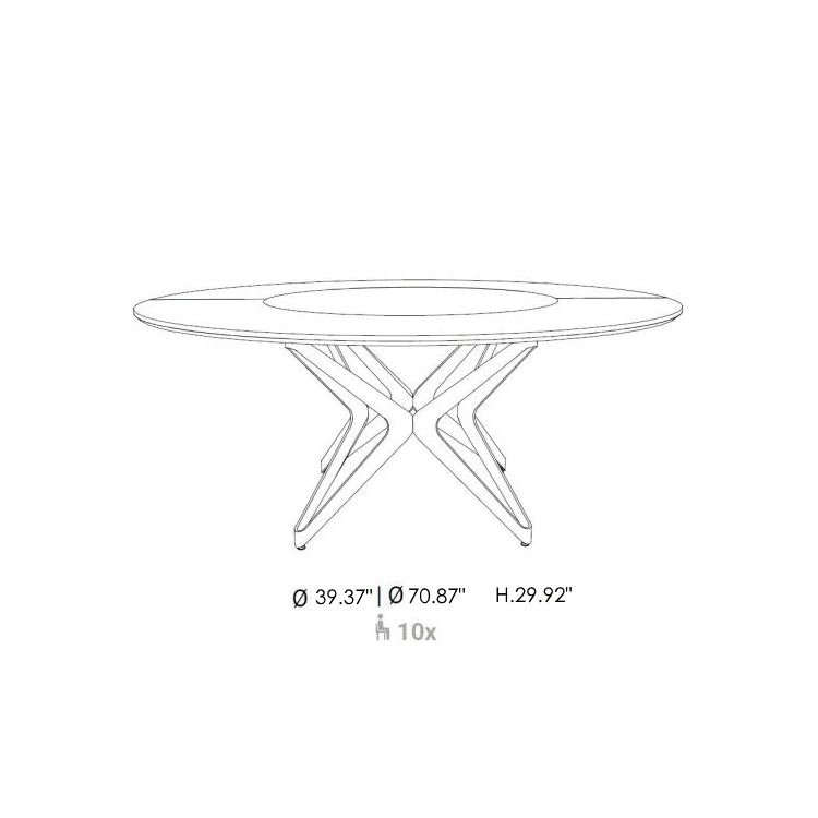 - Variant: Round Table 70.8" Diameter with revolving ceramic 39.3" Diameter lazy susan w / Pyroceram 39"