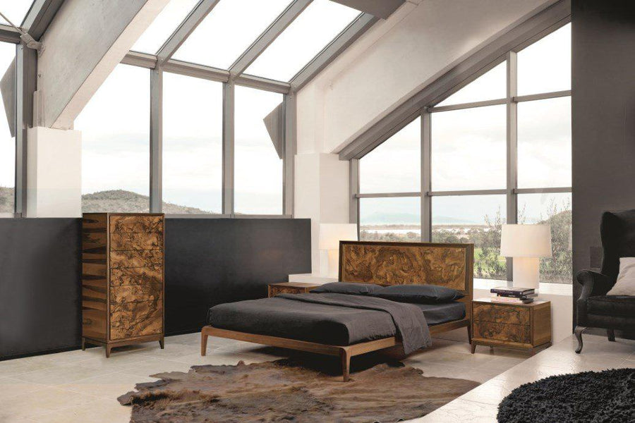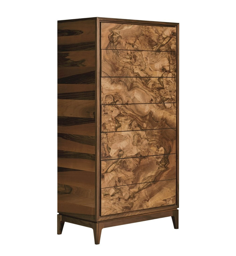 Masterfully crafted in Italy using artisan techniques by the expert hands of Italian cabinetmakers, the Burlwood Tallboy is constructed completely in solid walnut and burl inlay with a natural oil finish. Use of the best quality wood, the finest workmanship, and meticulous attention to the smallest detail guarantees the furniture meets the highest standards of quality. The Burlwood Tallboy has a matching Bed, dresser and nightstand all constructed with solid walnut and burl wood inlays.