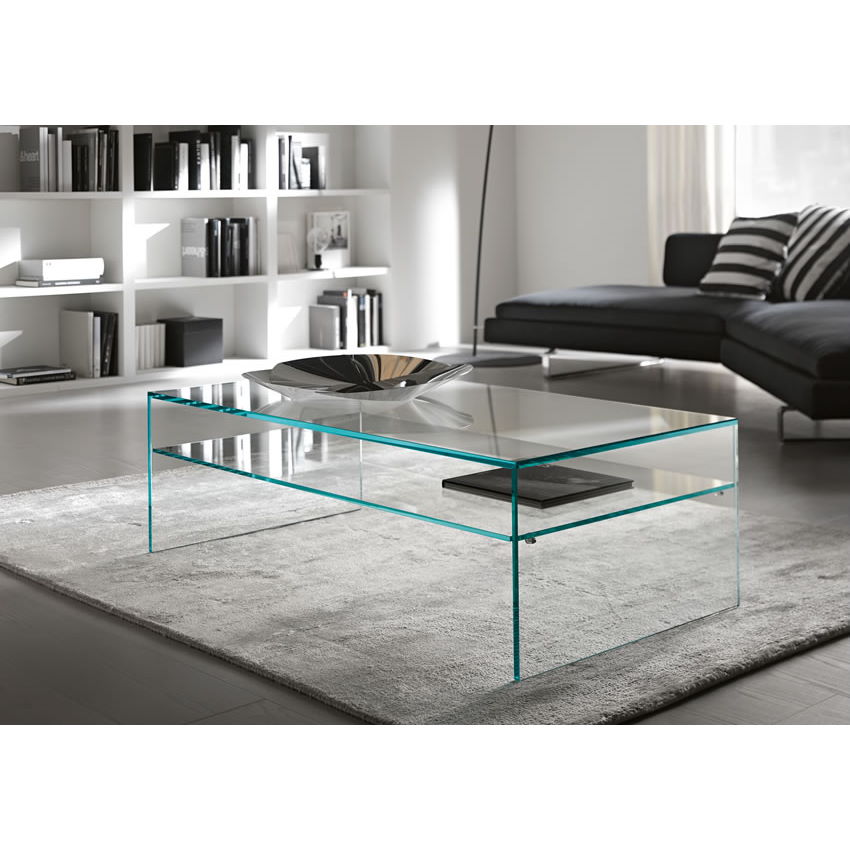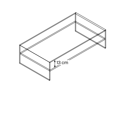 A bridge-like structure that is completed by a practical transparent or frosted glass undershelf. Thickness 15 / 10 mm.