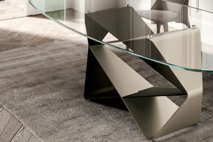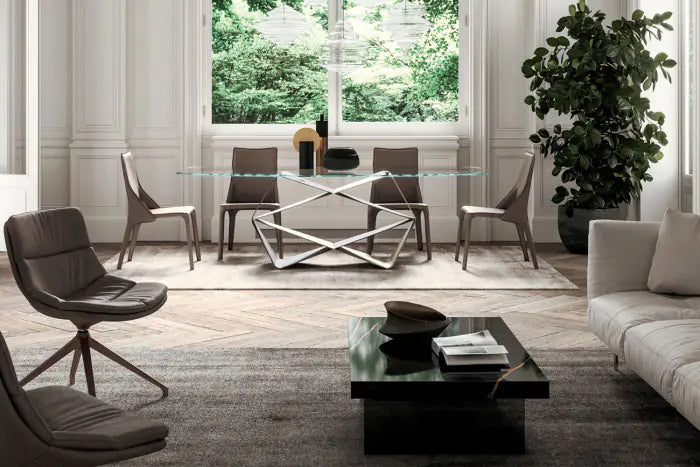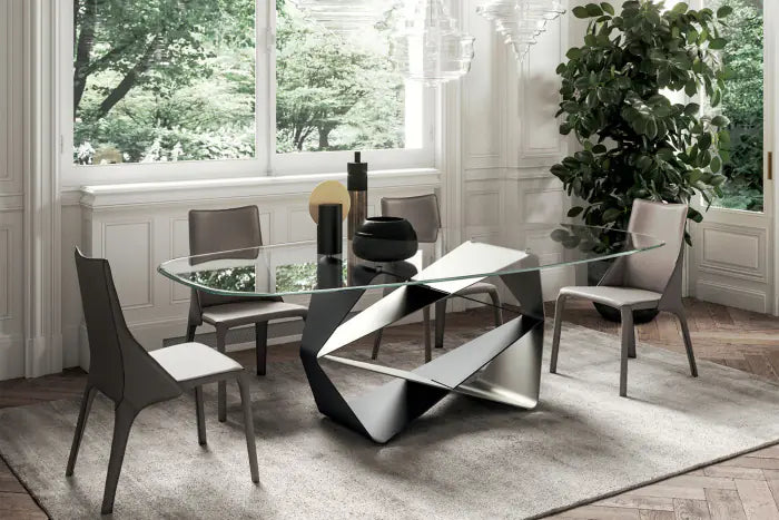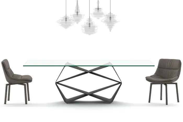 The Gem Dining table is functional art thanks to it's sculptural geometric interlocking metal base design.