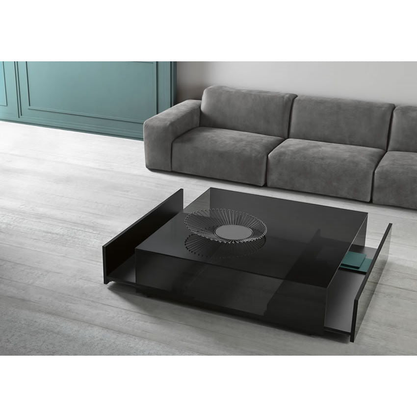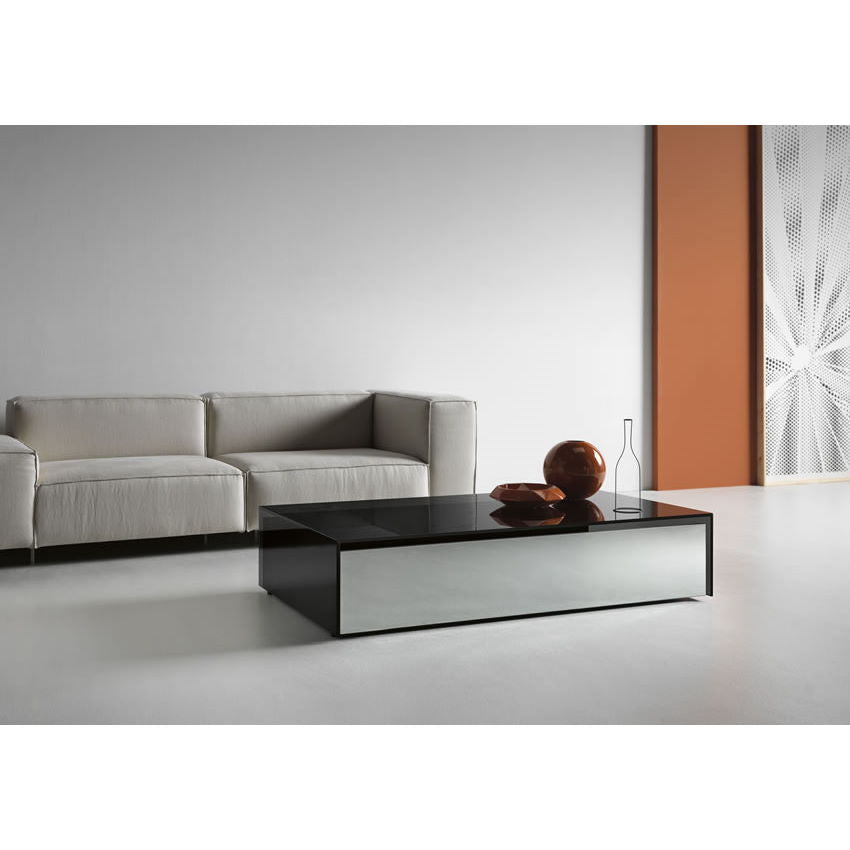 The Gotham table collection, with its simple form, is made of a console, coffee table and side table. The distinguishing mark is the smoked glass used for the external frame of each product.