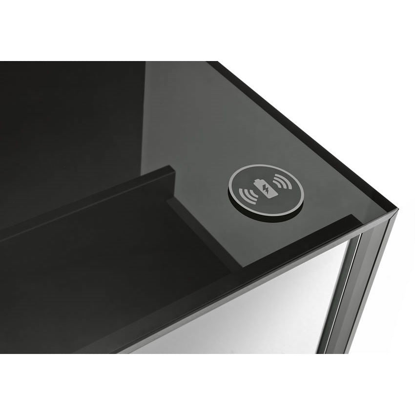 This recurring feature creates a strong complementarity between Gotham’s elements and enriches them of refined details, such as the “see, don’t see” effect of the internal black wooden drawers, equipped with soft closure and smoked mirror front. Gotham may be integrated with induction battery charger wireless. Thickness 12 mm.