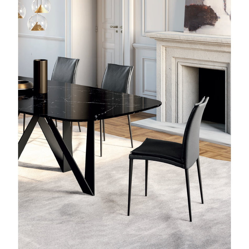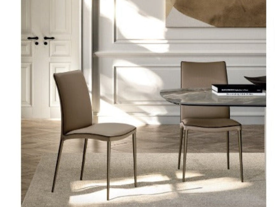 Available with the seat and back in fabric, eco leather and Leather with metal or upholstered legs with a standard, pillow or diamante quilted back.