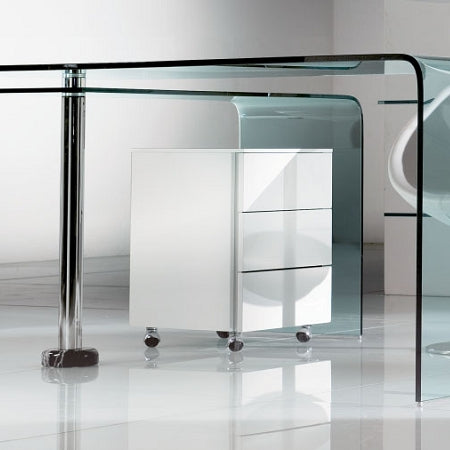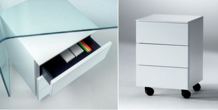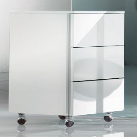 Office chest of drawers in white or black lacquered wood, in matte or shiny finish and with or without wheels. Available with three drawers or with one drawer and one filing unit. Made by Reflex