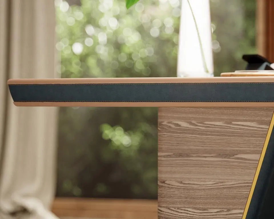 Enhance your workspace with the ISixty Desk, a perfect blend of aesthetics and functionality. What sets this collection apart is its cutting-edge technology, seamlessly integrated into its design. Choose from ash wood stained in various colors including rope, tobacco, or silicon,. The desk features elegant curved lines, strong grains, and a matte finish, complemented by luxurious leather upholstery in black, dove gray, or cream.