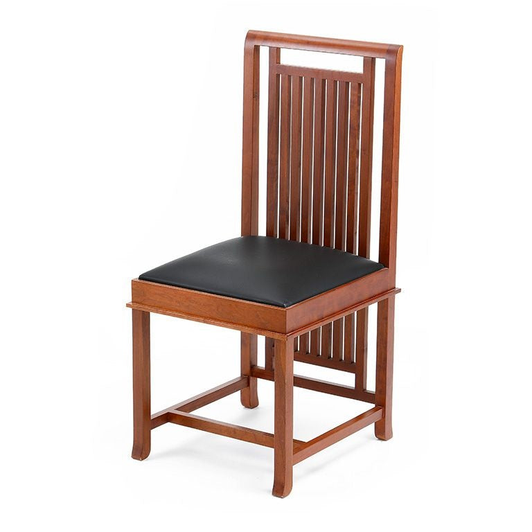 The Coonley chair is a classic example of the American Arts and Crafts style. Expertly crafted in solid cherry with a seat cushion in leather or fabric in your choice of colors, it is made to last a lifetime. It is the perfect companion to the Arts and Crafts chair, Arts and Crafts table, Arts and Crafts bookcase and the Arts and Crafts table square.