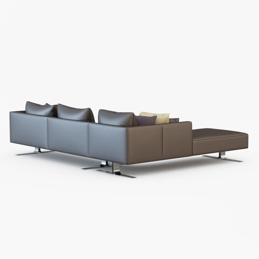 The load-bearing frame is constructed of poplar and beech heartwood with additional connecting elements in poplar plywood. Dap joints unite the various parts of the frame with securing cylindrical dowels. The seat webbing consists of elastic polypropylene and natural latex belts in two sizes, each with its own precisely defined elasticity. Belts 9 cm wide are fixed parallel to each other and perpendicularly to the length of at 20% elasticity; these are interlaced by 5 cm wide belts at 80% elasticity. The frame is upholstered with contoured sheets of resilient, CFC-free polyurethane foam with density of 35 kg/m3 and 75 kg/m3, covered with bonded plush. The fixed seat cushions are in polyurethane foam with density of 35 kg/m3 and 75 kg/m3 on the front part and afterwards covered with polyester wadding. The removable back cushions are filled with feather and polyester. The supports are made in chromed steel.