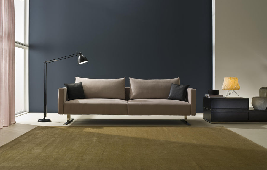 The idea was the one to re-create a comfortable and elegant product but at the same time contemporary in the lines and essential in the shapes. The seating express extremely lightness and respect to the proportions, as well as in the matching between the high and comfortable seating to the thin arms, or as the use of back feet that seem to let float the whole composition in the space, bringing it more ethereal.