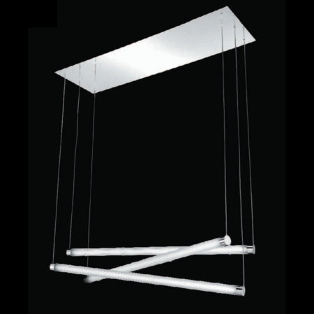 Pendant lamp with white or back lacquered or mirror glass support and Pyrex-glass tubes ribbed and sandblasted. Lighting plant with fluorescent tubes 174W. Made by Reflex