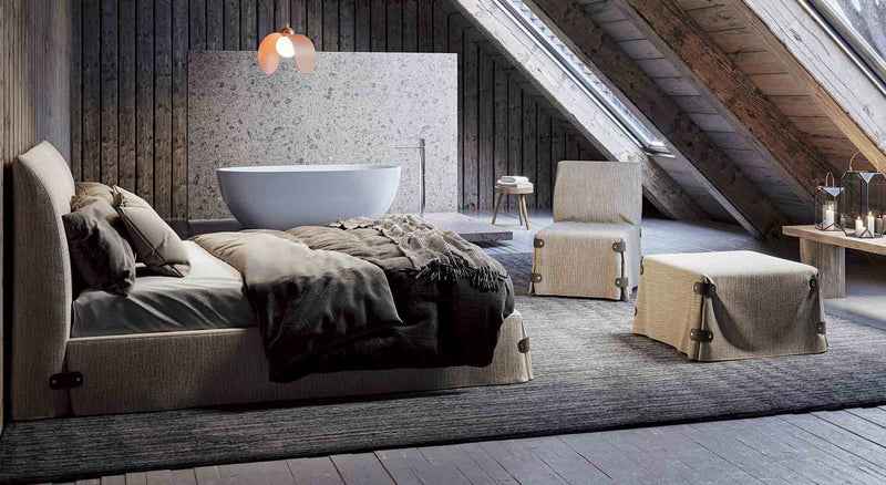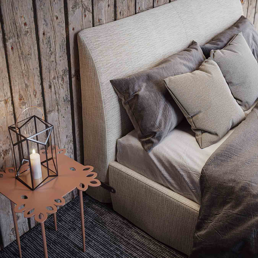 The pleasure of time for itself: a refined and elegant bed, with curious details that evoke, with subtle refinement,