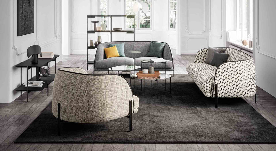 An elegant sofa that owes its personality to clean and soft lines. The rounded and enveloping shapes, the refined details, and the excellent finishes contribute to making it even lighter and more sophisticated.