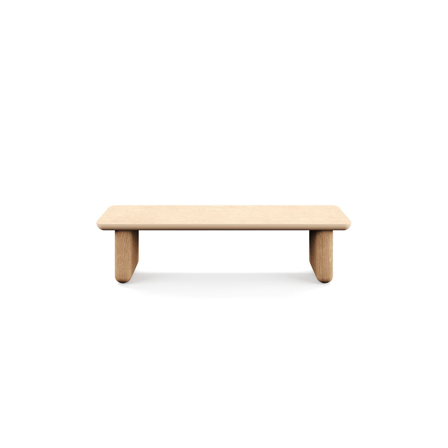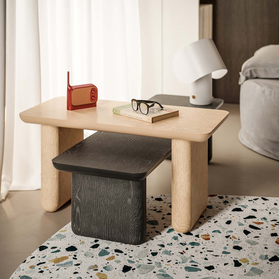 The warm wood accents meet in minimal design in the new Caillou bench: a versatile object that turns into a seat, bench, or coffee table.