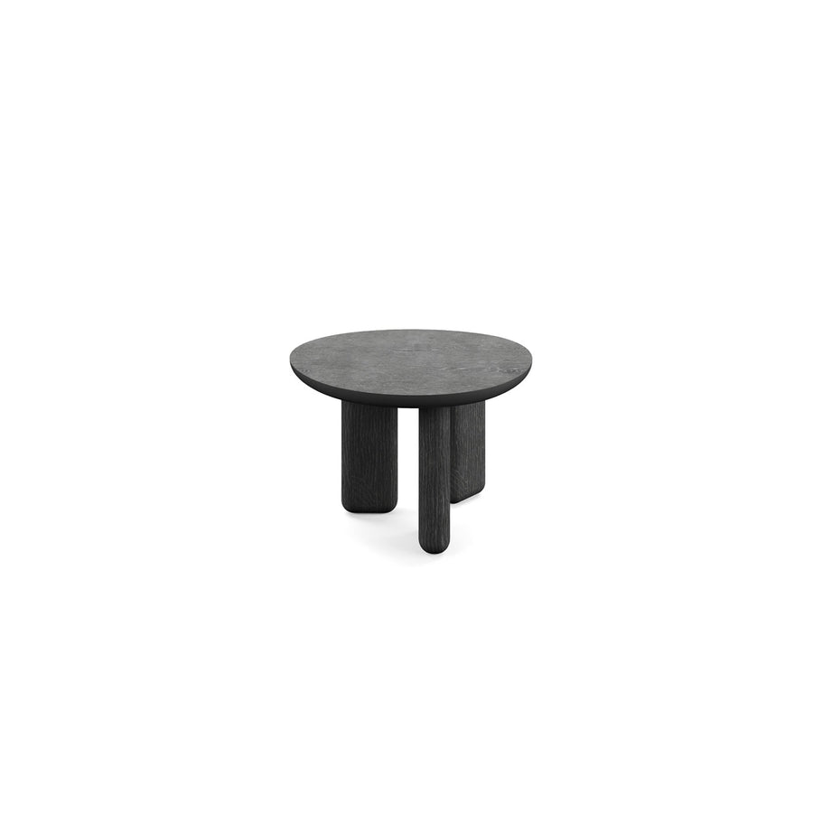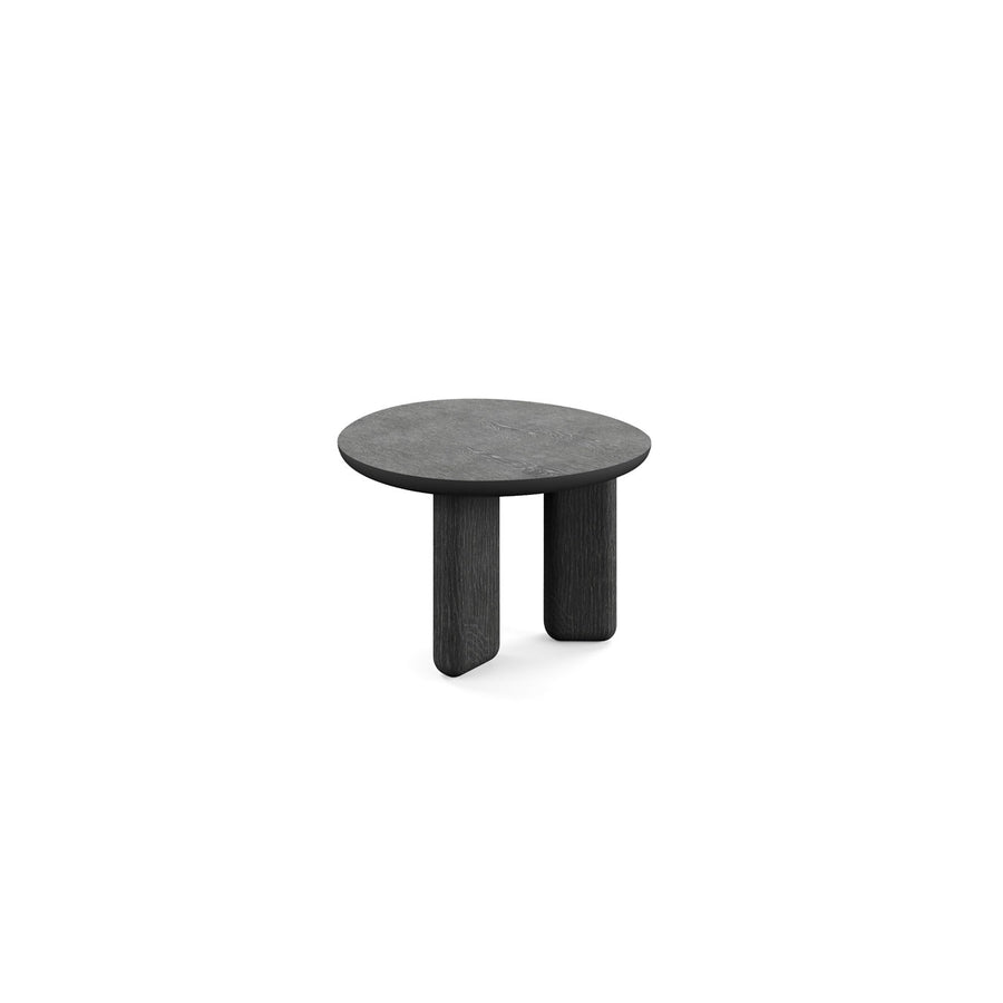Oriental-inspired, this table system is characterized by the solid wood structure and the rounded shapes of the tops and supports.