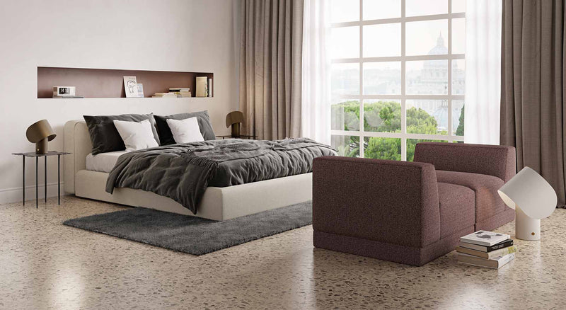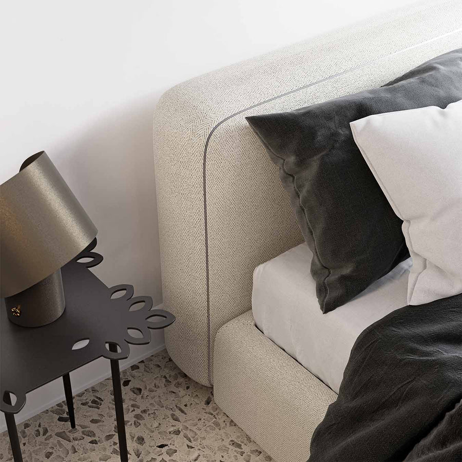 Fluid boundaries that move between clean and essential lines: the bed seen from a new perspective.