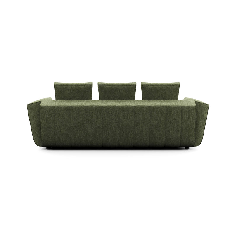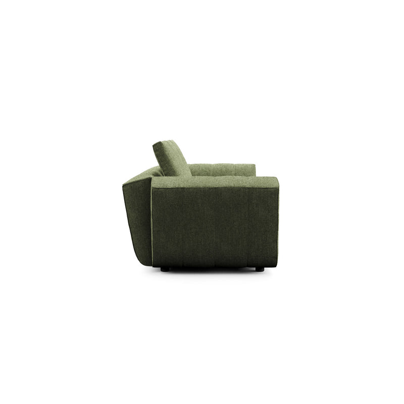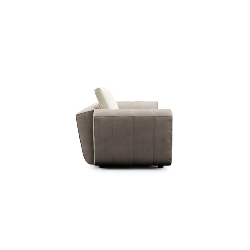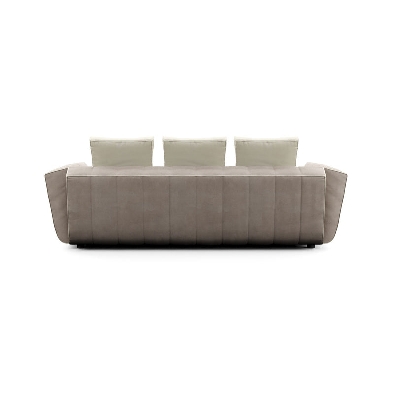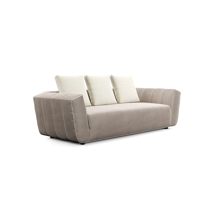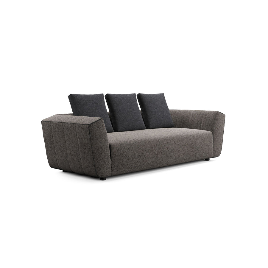 The grooved upholstery adds rhythm to the minimalist modules of the model and transforms the sofa into a refined piece of furniture.
