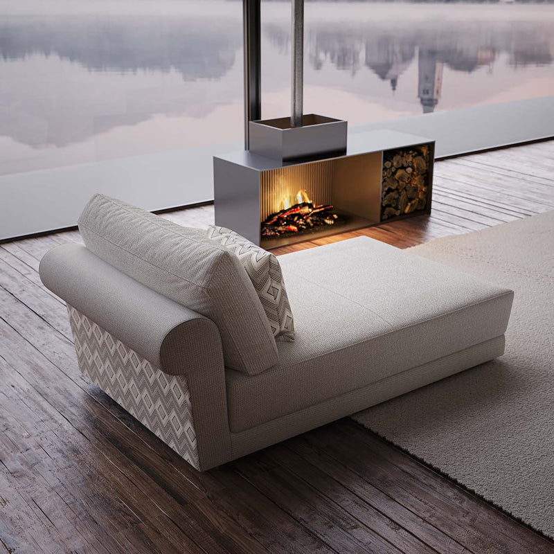 and modern design, the Dream Away collection takes from the past the curved and reassuring shapes of the ottoman-style armrest of the sofa, reinterpreting them according to new principles.