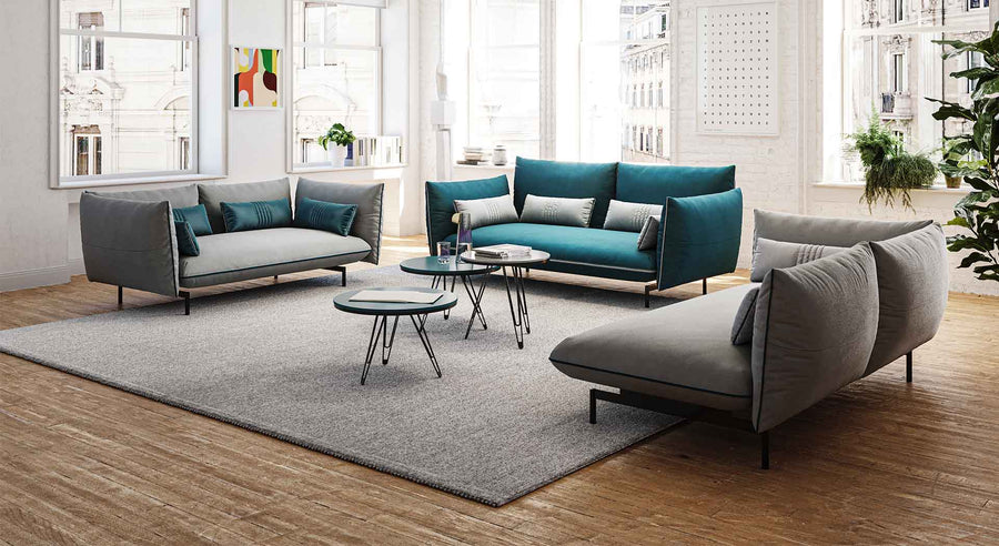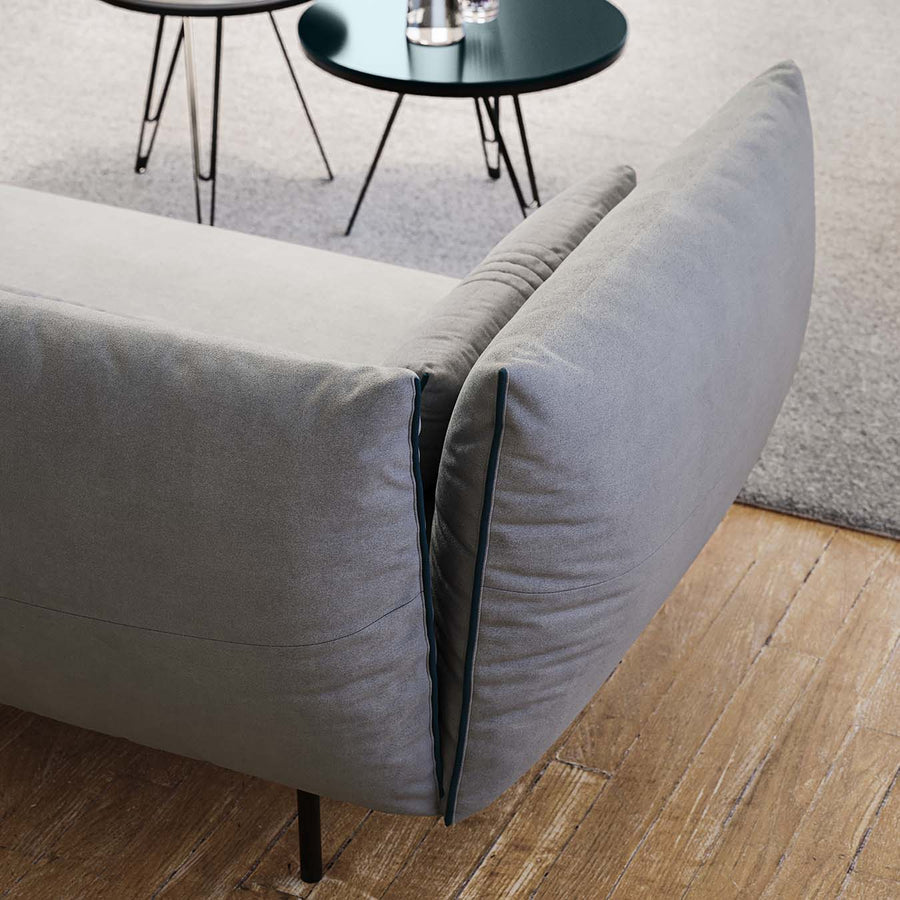 The Ice Breaker sofa, in soft velvet with ton sur ton pastel piping, owes its light design and sophisticated poise to its aspiration to traverse time and fashion.