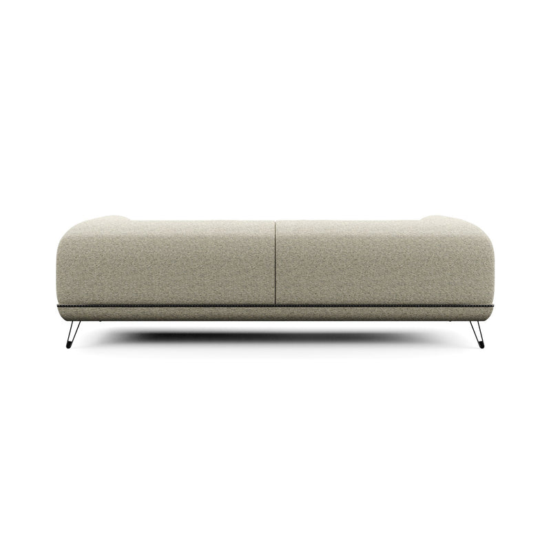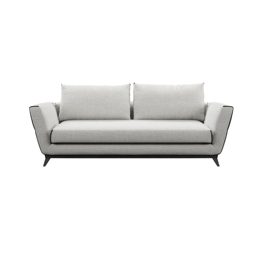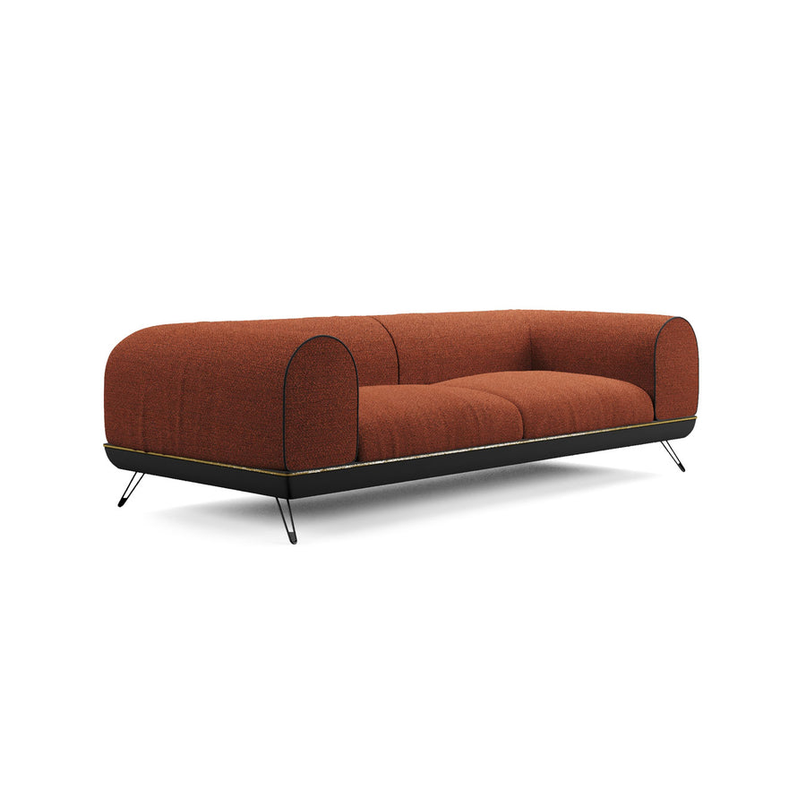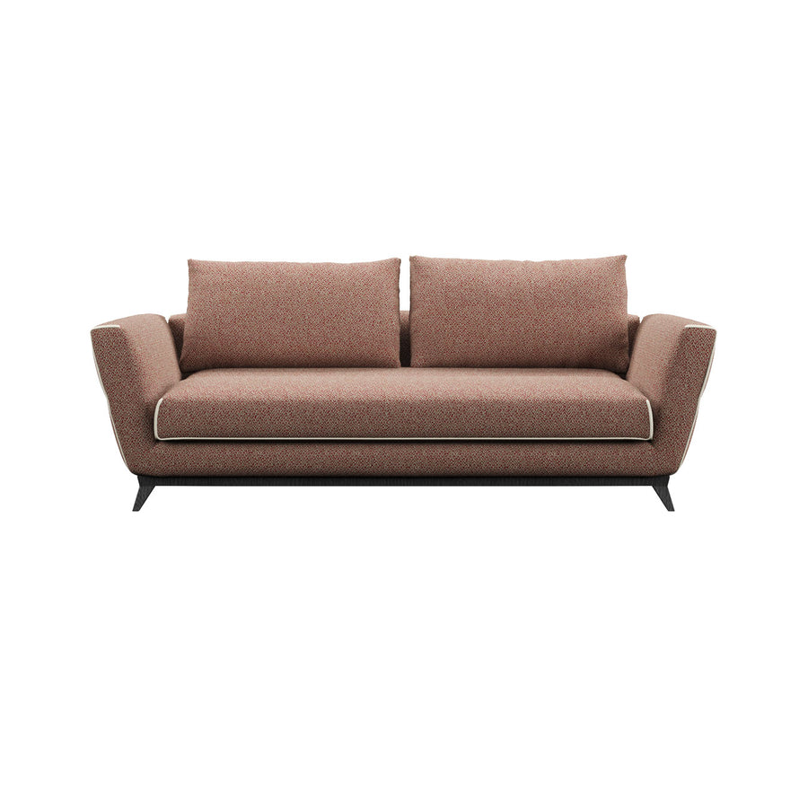 A contemporary rigor that draws inspiration from the past, and reveals its personality in the details: the wooden structure, light to the eye but solid, welcomes the unique seat cushion and backrest that is characterized by contrasting piping.