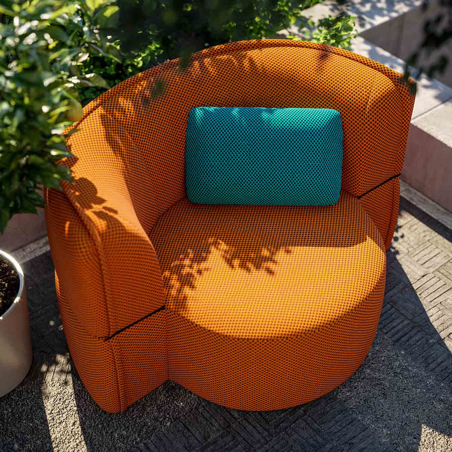 An armchair with a soft and enveloping design that alternately becomes a large island to live in freedom, simply turning the reclining backrest upside down with a single movement reminiscent of a blink of an eye.