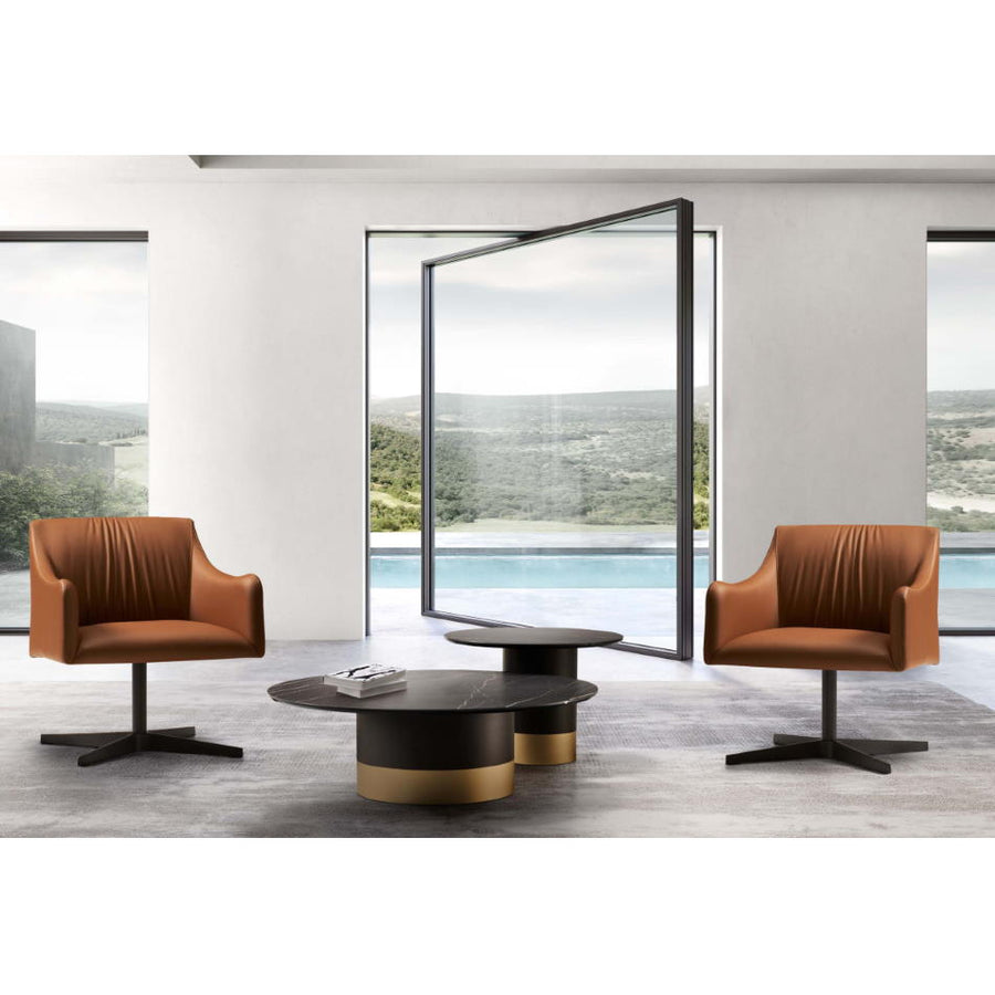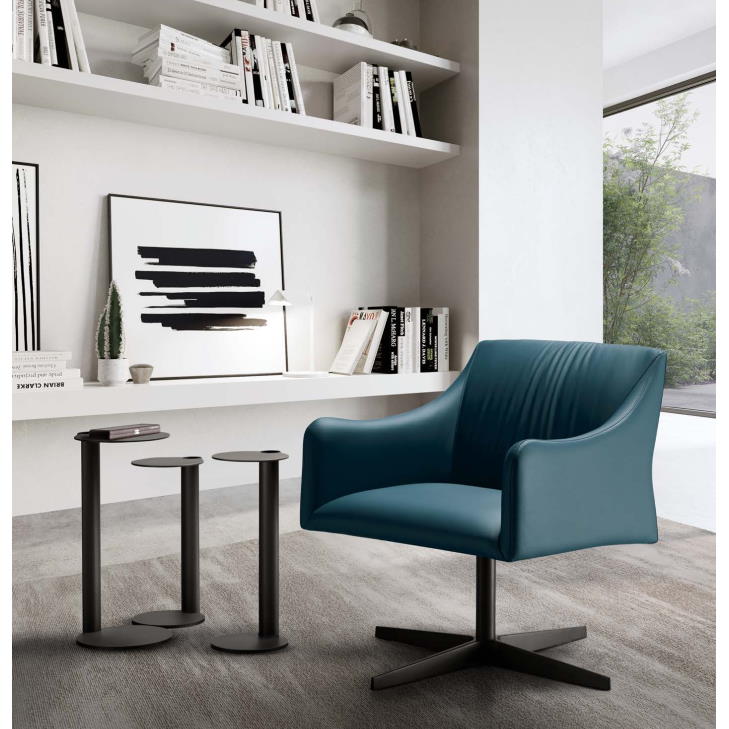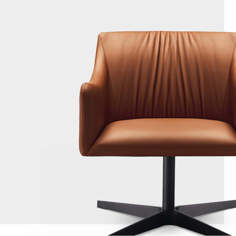 The metal base can be finished in black, white, anthracite, titanium bronze or gold. The seat can be upholstered in our L collection leather, eco leather, fabric or velvet.