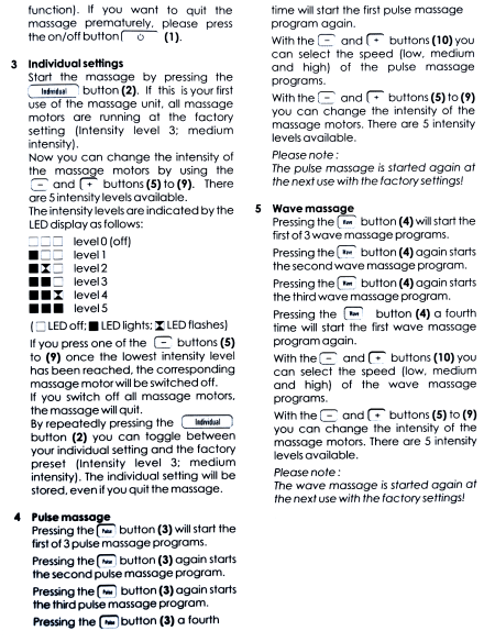 The multiple relax positions are individually adjustable and include a moving headrest, extendable foot rest, lumbar support, and optional electric massage of variable intensity with five massage zones, three wave programs, and two pulse programs. It is possible to find the ideal position of recline that completely relaxes the back and body to ease pain and stress.