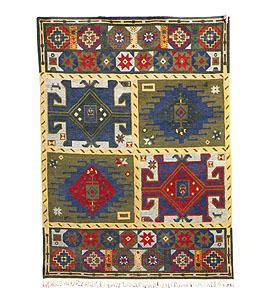The Mantra rug is a contemplative study in geometry, pattern and color. Natural fringe decorates each end of this rug. This traditional rug is designed in Nepal. The hand-knotted 100% pure Tibetan wool is colored using an ancient vegetable dye process which gives the wool a subtle, natural variation in color.