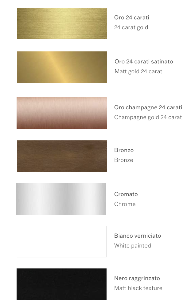 For the three star flat steel base you can choose Bronze, Black, White , Chrome, 24-carat pure gold plating 24-carat gold in polished, or matte, or champagne pink gold version.