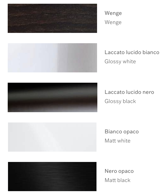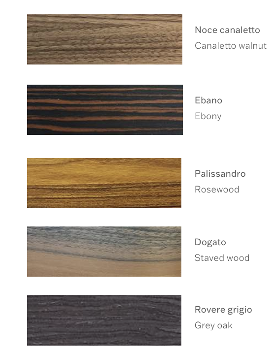 The back side shell is available in Ebony, Canaletto Walnut, Wenge, Rosewood, Stave Wood, Grey Oak Cherry, Gloss or Matt Black and Gloss or matt white .