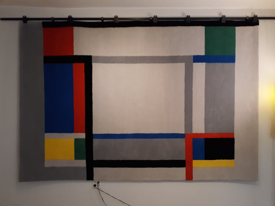 The Corbu Rug embodies the clean geometric minimalist lines of Le Corbusier's famous Le Petit sofa designed in 1928 and incorporates the bold primary colors used in dramatic juxtaposition that were a signature of his work. This rug is made with 100% New Zealand wool and combines beautifully with all items in the Le Corbusier collection as well as the Iconic Designs in the Modern Classics Collection.