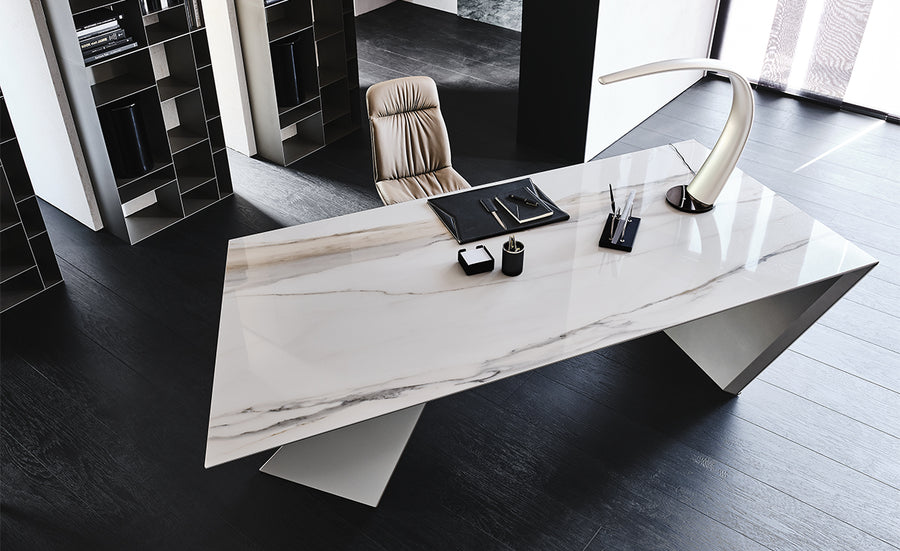 Nasdaq Keramik Desk with top and sides in Marmi ceramic available in the finishes: