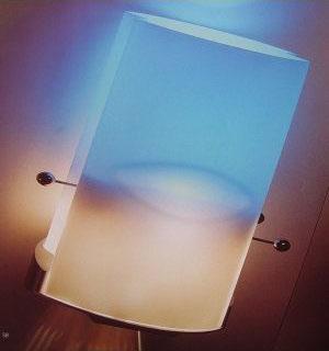The Ombra, which means shadow, is simply shaped into an essential rectangle divided by a lens shaped indentation. When lit, Ombra reveals unique lighting effects. There is white light, colored light, and a subtle combination of colors near the indentation. The most beautiful feature of this lamp is the unique pattern of shadows that it casts upon the wall while delighting the senses with color. The name Ombra pays homage to the shadow, light's silent partner.