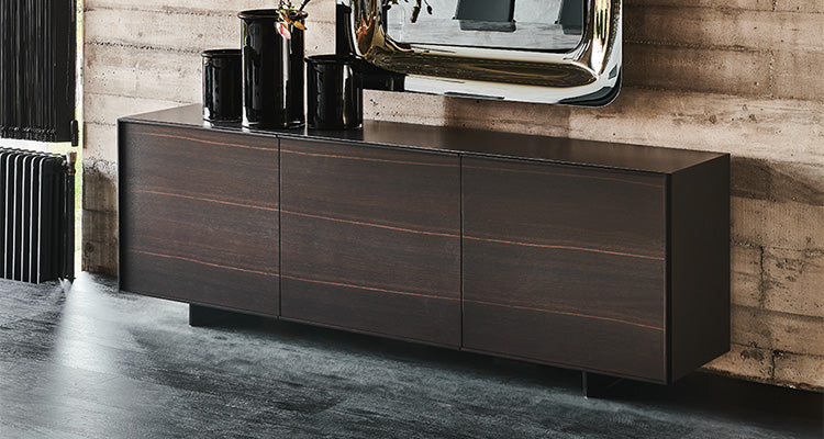 Sideboard with doors and optional drawers in Canaletto walnut (NC) or burned oak (RB).